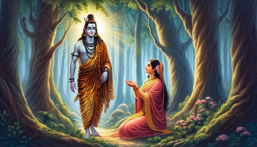 As she pondered the wonder before her, Lord Shiva, filled with mercy, took the form of a wandering monk and approached the Brahmin woman. With gentle words, He guided her, then revealed His true form, filling her with awe. Realizing she was in the presence of the great Lord Shankara, she bowed in reverence, her heart overflowing with love and devotion. But just as suddenly as He appeared, Lord Shambhu, in the guise of the monk, vanished from sight.