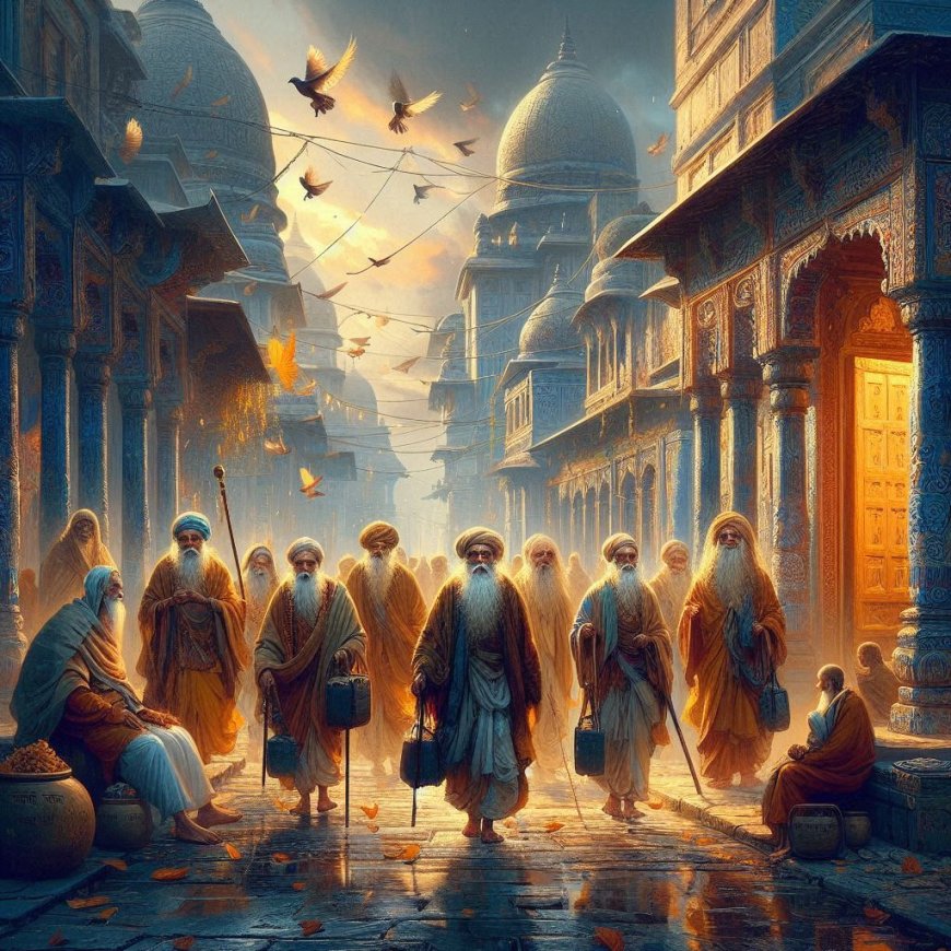 One day, Dwaraka was visited by a group of highly respected holy sages, including Vishwamitra, Narada, and Kanwa, who were known for their extraordinary spiritual powers and their ability to influence the fate of the world. The arrival of these rishis carried an aura of mystery, as if they were carrying an important unspoken message. Krishna, always alert to omens, welcomed them with great respect, as did the other members of the Yadava tribe. The presence of the rishis in Dwaraka was not only considered an honor, but also a sign of something big that might change the course of their lives.
