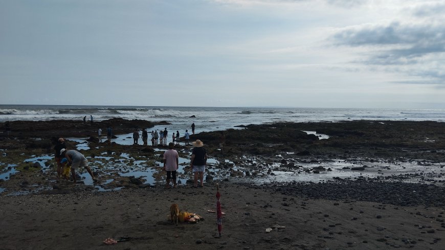 Bali is always associated with beautiful beaches, yet not all of them are in the spotlight of tourism. One hidden gem is Batu Lumbang Beach, located in Batulumbang, Antap, Selemadeg, Tabanan. This beach offers a serene atmosphere with a natural landscape of black sand, rocky cliffs, and wide stone formations that define its unique character. The name “Batu Lumbang,” meaning “wide rock” in Balinese, reflects the large flat rocks scattered along the shoreline.