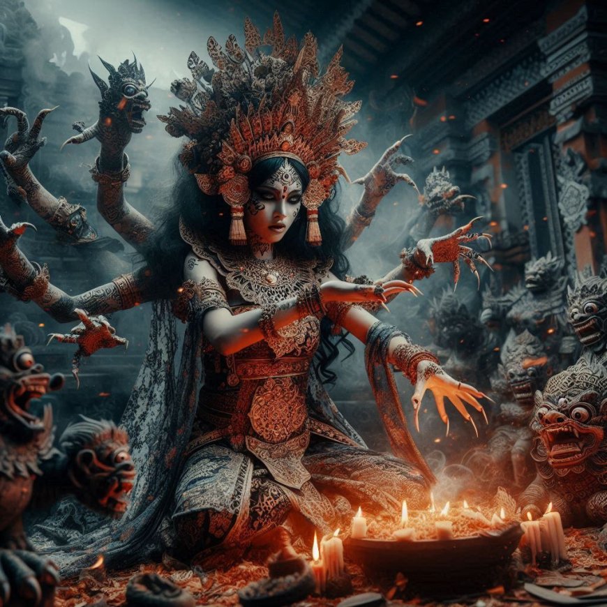 Dia memanggil roh-roh jahat dan iblis-iblis untuk membantunya dalam rencana balas dendam tersebut. Kutukan yang dilepaskan Rangda menyebabkan negeri Bali dilanda penyakit, kekacauan, dan kematian.Seluruh wilayah menjadi genting, dan masyarakat hidup dalam ketakutan akan kekuatan gelap Rangda.