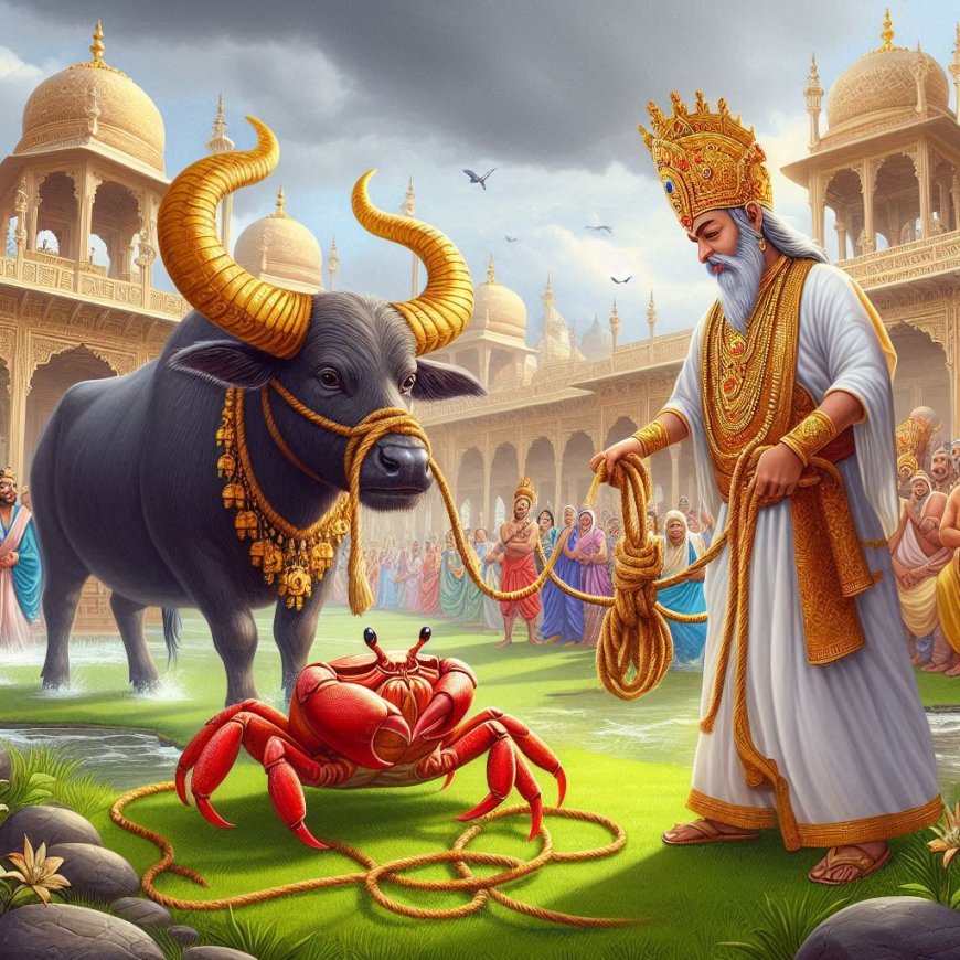 Ilustrasi Kerbau Bertanduk Emas yang Menginjak Kepiting (Sumber: Koleksi Pribadi)
