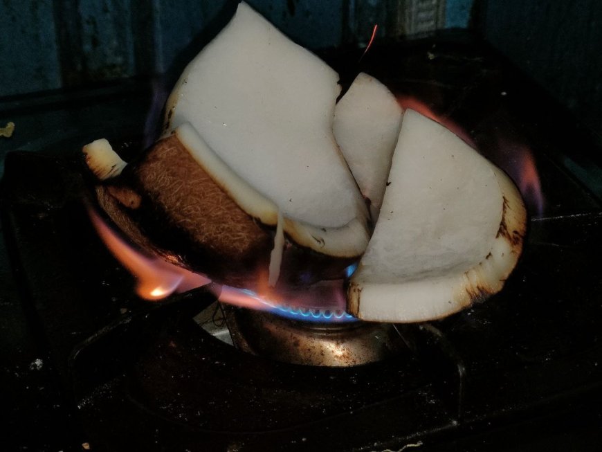 Bakar Kelapa diatas Kompor (Sumber Foto : Koleksi Pribadi)
