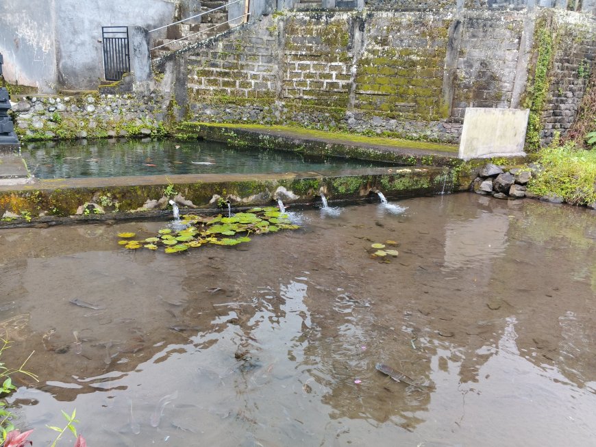 Di bawah pancuran, air yang mengalir mengisi kolam yang dipenuhi ikan-ikan kecil yang berenang dengan bebas. Kehadiran ikan-ikan ini memberikan gambaran sebuah ekosistem yang sehat dan alami, di mana air jernih menjadi rumah yang ideal bagi mereka. Ikan-ikan yang tampak bergerak aktif menambah kesan bahwa kolam ini penuh dengan kehidupan, menciptakan suasana yang hidup dan dinamis. Keberadaan ikan-ikan ini tidak hanya memperindah kolam, tetapi juga menunjukkan keseimbangan lingkungan yang terjaga di sekitar mata air ini. Mereka berfungsi sebagai indikator bahwa kualitas air di Toya Bulan tetap terjaga, menjadikannya tempat yang subur bagi kehidupan. Kolam yang dihuni ikan-ikan kecil ini tidak hanya menjadi tempat hidup bagi makhluk air, tetapi juga menjadi daya tarik visual yang menghidupkan suasana, memberikan kedamaian bagi setiap pengunjung yang datang untuk menikmati keindahan alam yang murni ini.