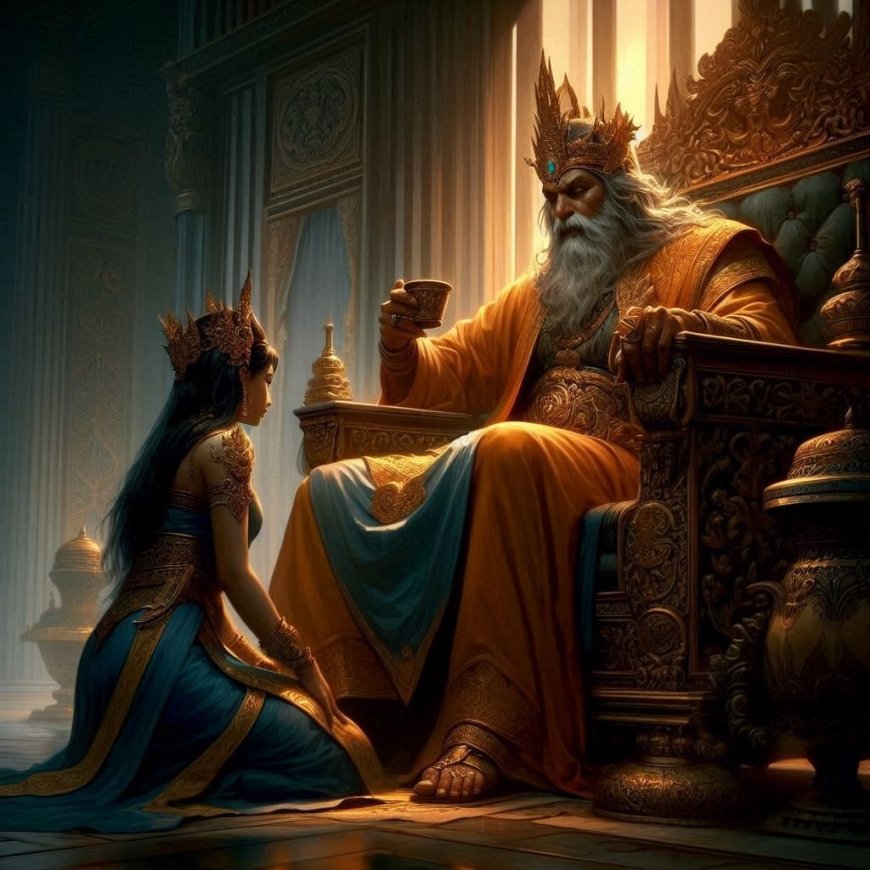 Tantri told her family, “Do not worry about me. I will bring change to this kingdom, or I will die with honor.” With great courage, Tantri stepped toward the palace, determined to useher intelligence to stop the king’s cruel habit. She knew that only through wit could she survive and change the king’s heart.