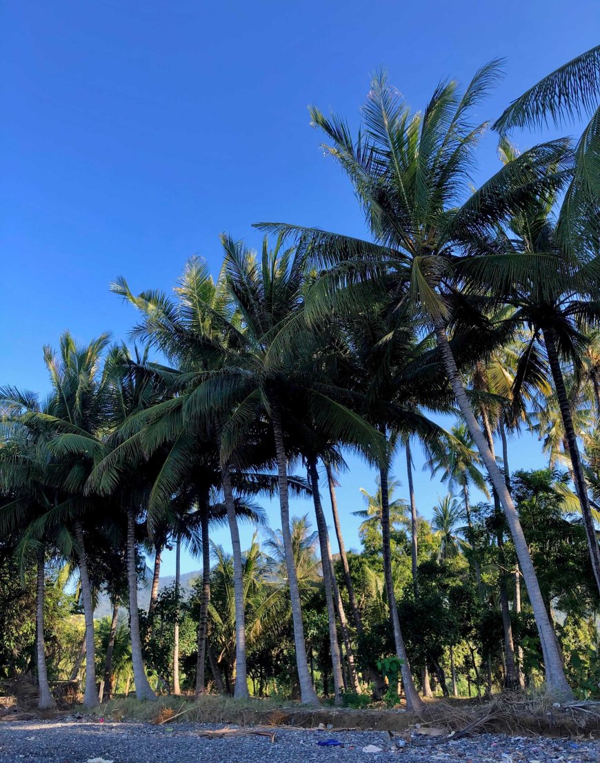 Palisan Beach in Les Village, Tejakula District, Buleleng Regency, offers the charm of sunset intertwined with natural rocky contours and rows of tall coconut trees. Its calm, natural atmosphere makes it an ideal place to enjoy evening moments. In addition to its natural beauty, activities by locals who utilize coastal stones also form part of the local economic dynamics.