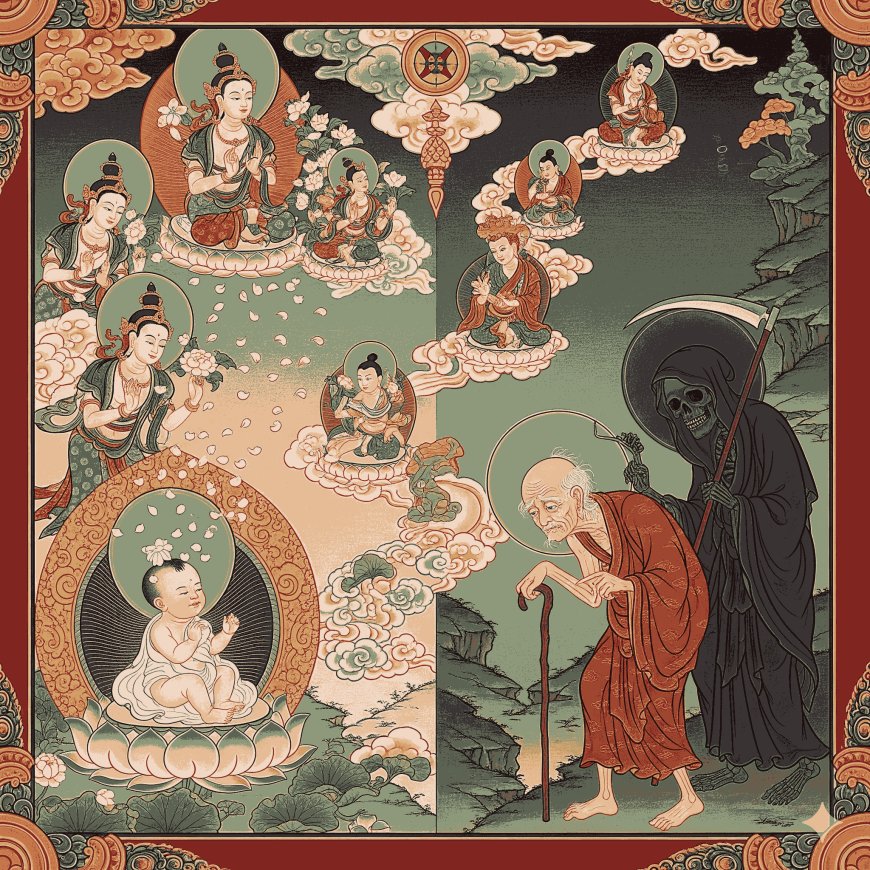 Illustration depicting Jati and Jaramarana, AI Illustration (Photo Source: Private Collection)