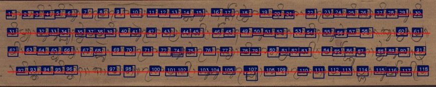 Once the characters have been recognized, the challenge is to arrange them in order. Unlike modern paper, palm leaf manuscripts often have dynamic writing positions. This is where the Major Line algorithm comes into play. This algorithm works like a road guide, determining the main reference line so that the system knows exactly the order in which to read the characters, ensuring that no “sounds” are mixed up or jump from their original lines.