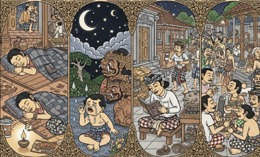 The Kala Tattwa Lontar also contains a symbolic list of humans said to become the "food" of Sang Hyang Kala: those who sleep until late afternoon, children who cry at night, individuals who recite sacred texts in the middle of the road, and groups who gather idly in public spaces. This list is not to be taken literally, but rather as a moral code reminding people that deviant behaviors have consequences. Thus, Sang Hyang Kala functions as a guardian of ethics and morality, guiding human conduct in accordance with dharma.