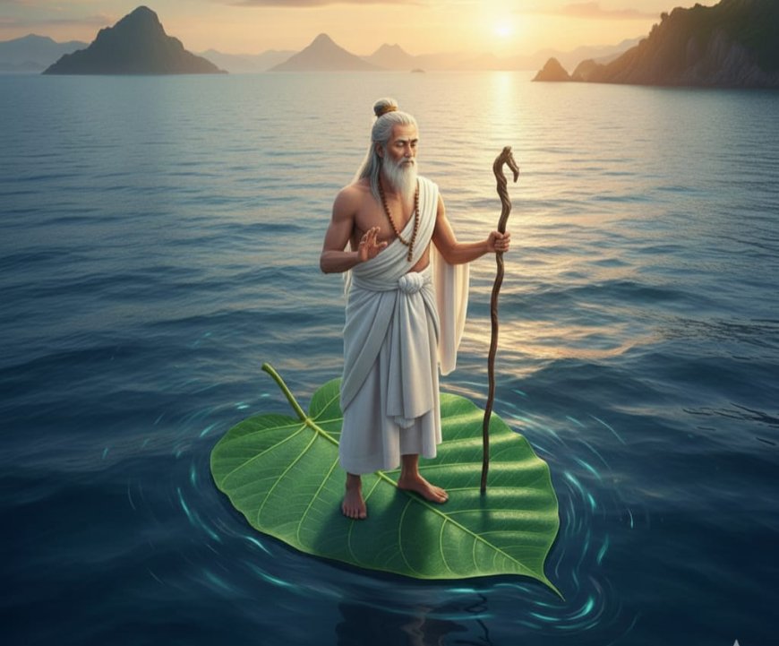 AI Illustration of Mpu Bharadah Crossing the Ocean on a Leaf (Photo Source: Personal Collection)